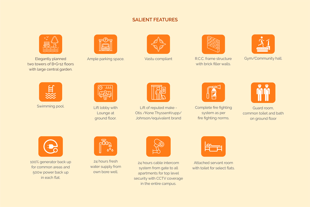 Elegantly planned two towers of Basement+ Ground+12 floors with large central garden.